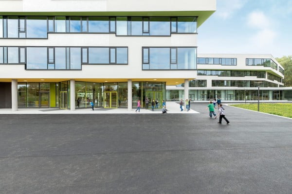 Новая школа, созданная при сотрудничестве студий behnisch architekten и architekturbüro leinhäupl + neuber была построена в Германии. Средняя школа Эргольдинга – инновационное сооружение, центральной частью которого является просторный открытый атриум, который отлично просматривается изо всех отделений учебного заведения, обеспечивая визуальное единство всего помещения. Использование цветового кода при оформлении пространства помогает студентам легко ориентироваться во внутреннем пространстве школы.