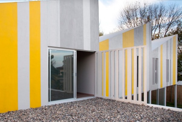 Расположенный в Мексиканском городе Лагос Де Морено, этот дом встречает жильцов и посетителей фасадом, раскрашенным серыми и желтыми вертикальными полосами, среди которых гармонично разместились тонкие невесомые оконные полосы, что придает всему зданию некоторую игривость. Кроме того, вертикальные линии верхней части фасада помогают привлекать внимание к полностью застекленной нижней части, где расположились помещения общего использования.